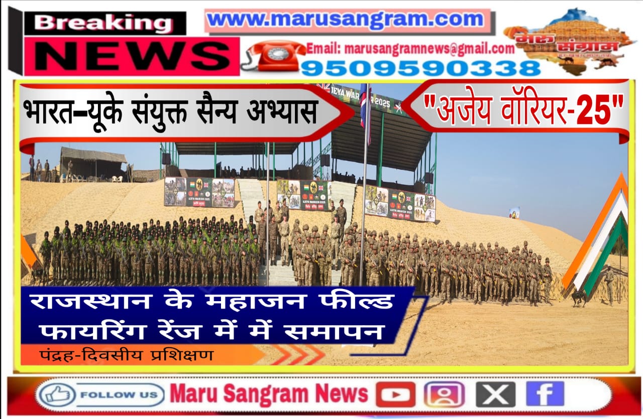 भारत–यूके संयुक्त सैन्य अभ्यास ‘अजेय वॉरियर-25’ का राजस्थान के महाजन फील्ड फायरिंग रेंज में में समापन….. भारत–यूके संयुक्त सैन्य अभ्यास ‘अजेय वॉरियर-25’ का राजस्थान के