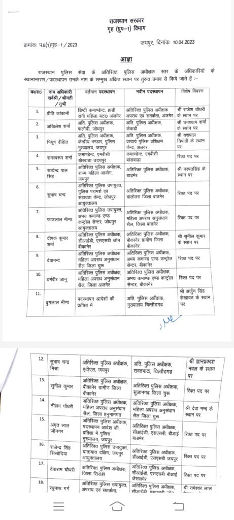 Big Breaking : 124 आरपीएस अफसरों के हुए तबादले, बीकानेर में इनको मिलीं जिम्मेदारी, देखें सूची….