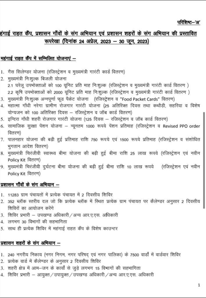 In these camps, Chief Minister Gas Cylinder Scheme, Chief Minister Free Electricity Scheme, Chief Minister Free Annapurna Food Packet Scheme, Mahatma Gandhi NREGA, Indira Gandhi Urban Employment Guarantee Scheme, Social Security Pension Scheme, Palanhar Scheme, Chief Minister Chiranjeevi Health Insurance Scheme and Chief Minister Chiranjeevi Accident Insurance Scheme Including information about various schemes will be given. Along with this, the common people will get the benefit of the schemes on the spot.