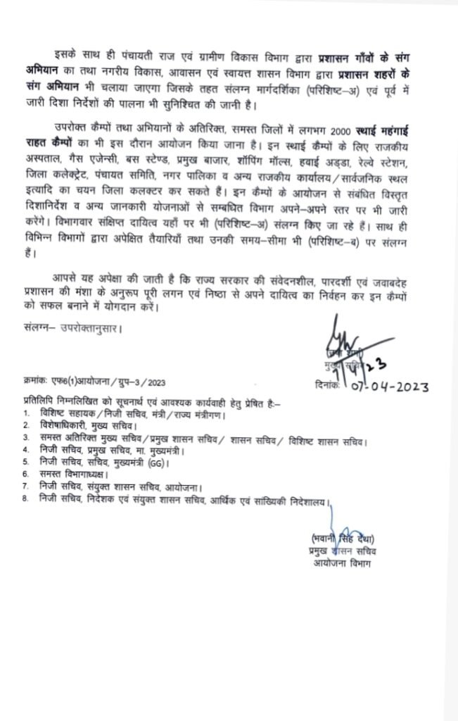 Permanent dearness relief camps will be set up at 2000 places in the state. These camps will be organized at government hospitals, gas agencies, bus stands, major markets, shopping malls, airport, railway station, district collectorate office, panchayat samiti, municipality and other government offices and public places. Along with this, at each panchayat samiti level in the rural areas, one dearness relief camp will be organized along with the campaign along with the administration villages. In urban areas, one inflation relief camp will be set up at each municipal level, 2 at municipal council level and 4 at municipal corporation level.