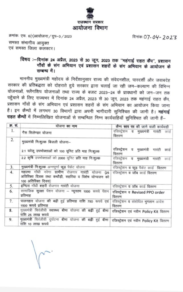 Jaipur, @MaruSangram. The state government will set up camps from urban wards to villages regarding schemes for public welfare and inflation relief. In the state from April 24 to June 30, inflation relief camps will be organized along with the campaign with the administration villages/cities. In these, the general public and the deprived sections will be linked to the schemes according to their eligibility by giving information about public utility announcements.