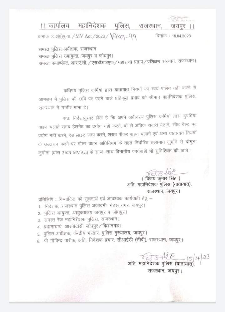 जयपुर, @MaruSangram। राजस्थान में पुलिसकर्मियों का भी कटेगा चालान।