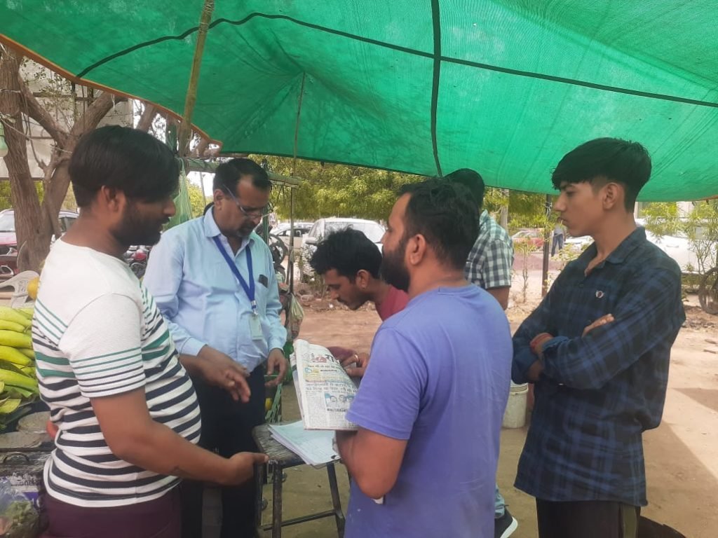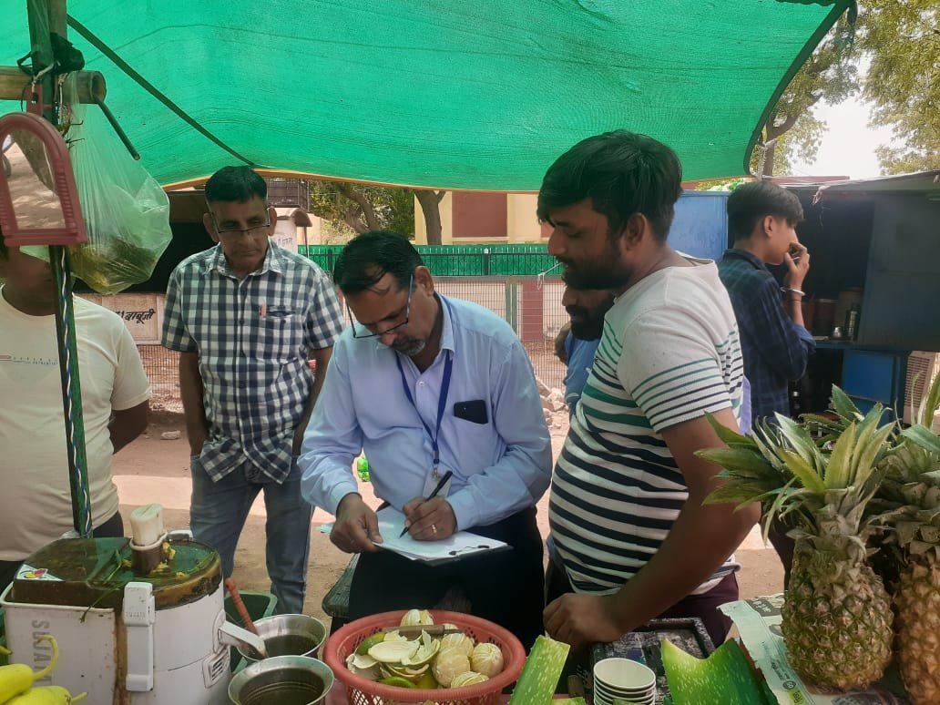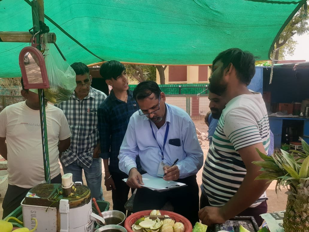 Food Safety Officers Shravan Verma and Rakesh Kumar Godara, who were part of the team, held a meeting and discussion with food traders, thadi walas, thela walas, juice walas at Bikaner Chowpatty, Major Purnasingh Circle, Roadways Bus Stand and the local court premises, giving them food security measures. Gave information about the compulsion of license and registration under the provisions.