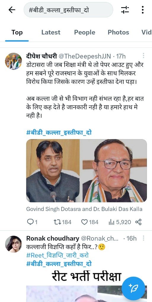 हजारों लोगों ने #बीडी_कल्ला_इस्तीफा_दो ट्वीट किया।