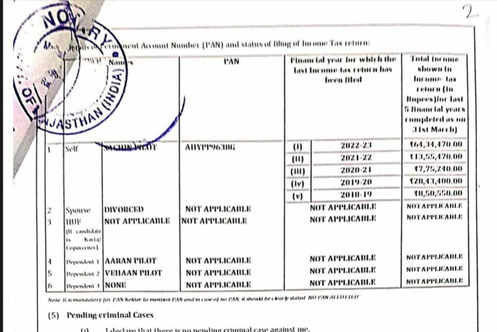 Sachin Pilot has written the names of his sons – Aran Pilot and Vihaan Pilot in the dependent column. Sara Pilot is Farooq Abdullah’s daughter, there were talks of separation even nine years ago. During the 2014 Lok Sabha elections, there were talks of separation of Sachin Pilot and Sara but at that time they were dismissed as rumors.