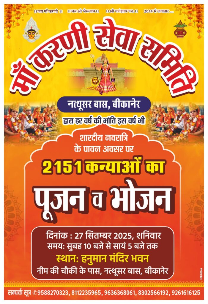Maa Karni Seva Samiti will worship and feed 2151 girls on Navratri, poster released….