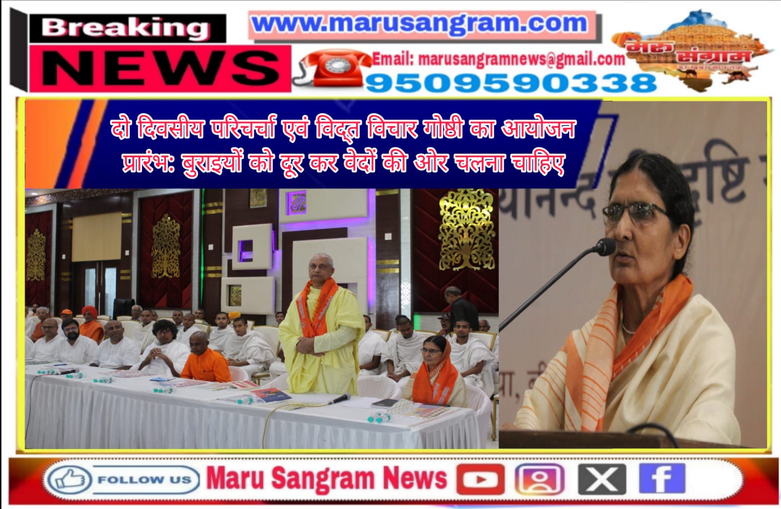 दो दिवसीय परिचर्चा एवं विद्त विचार गोष्ठी का आयोजन प्रारंभ: बुराइयों को दूर कर वेदों की ओर चलना चाहिए