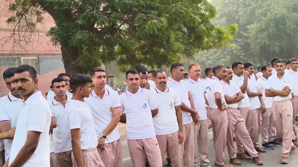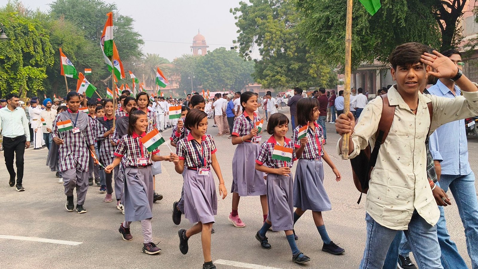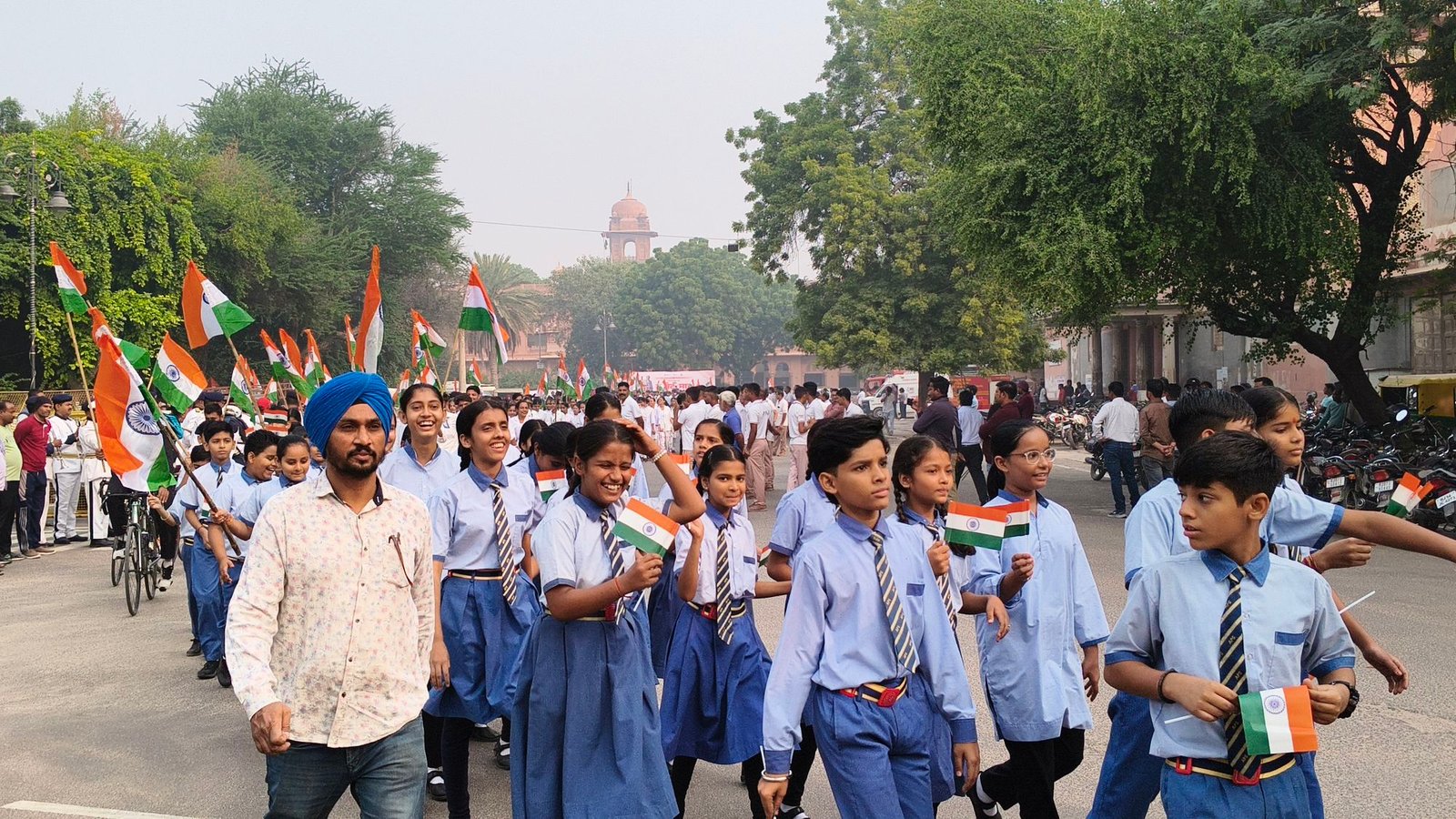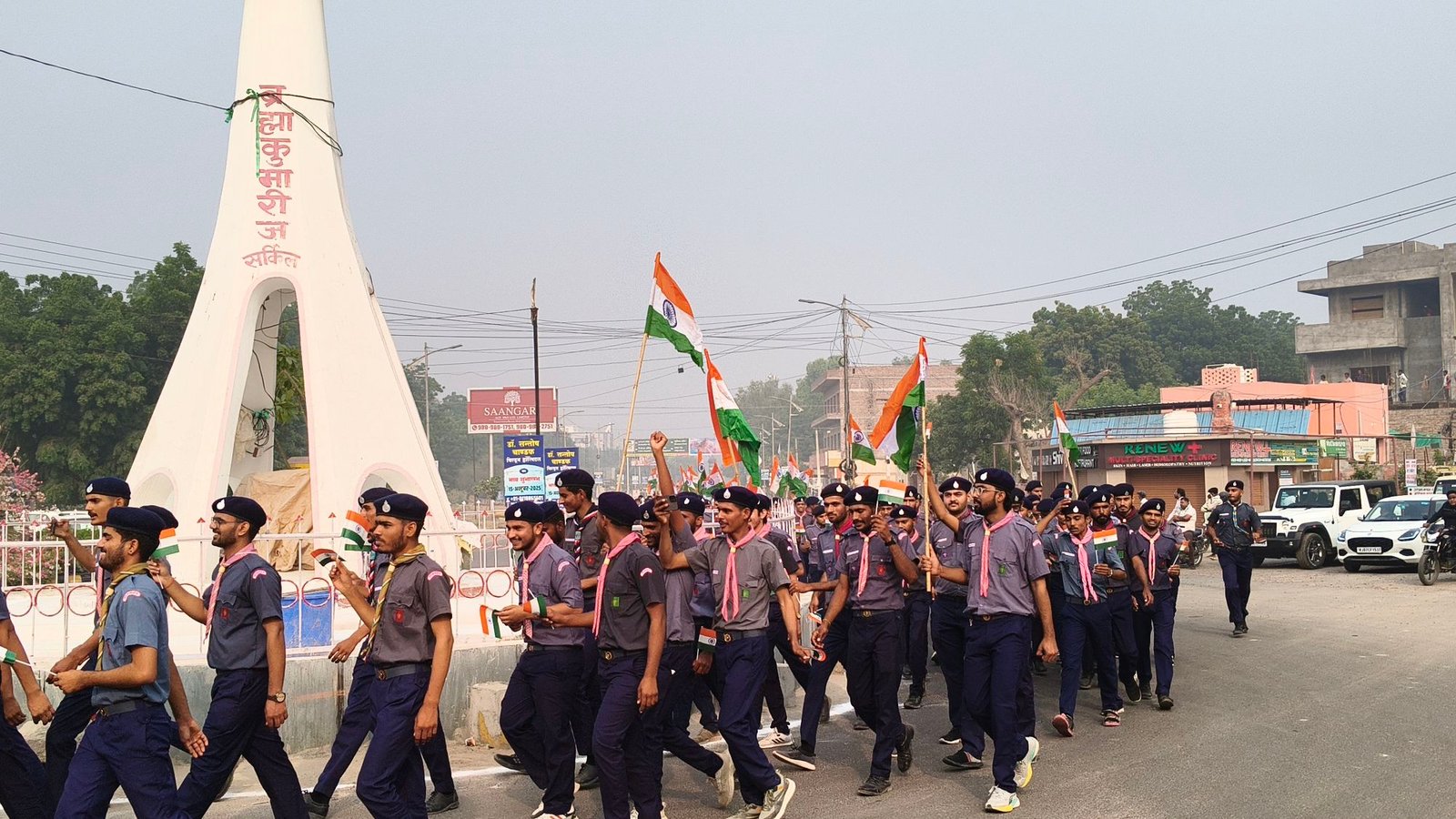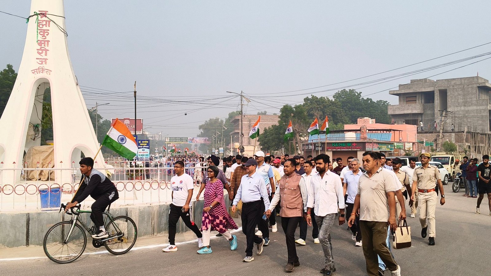Participants, holding the tricolor in their hands, chanted “Bharat Mata ki Jai Ghosh” and “Sardar Patel Amar Rahe.” The Rajasthan Police band played melodious patriotic tunes.