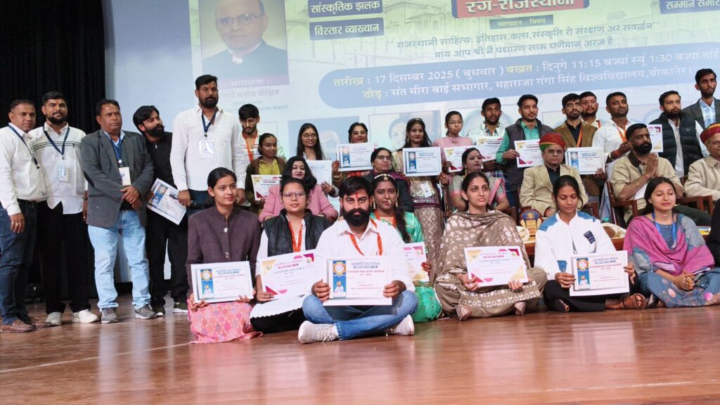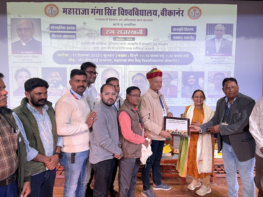 बीकानेर, @MaruSangram। महाराजा गंगा सिंह विश्वविद्यालय के स्ववित्तपोषित राजस्थानी विभाग एवं अधिष्ठाता, छात्र कल्याण के संयुक्त तत्वावधान में रंग राजस्थानी कार्यक्रम का आयोजन संत मीराबाई सभागार में किया गया।