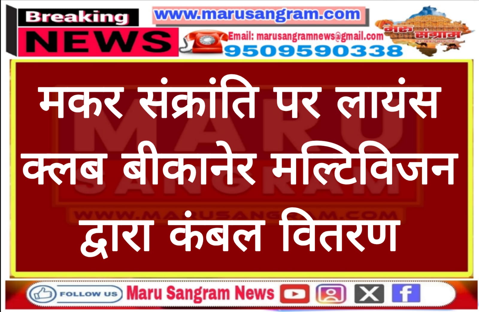 मकर संक्रांति पर लायंस क्लब बीकानेर मल्टिविजन द्वारा कंबल वितरण….