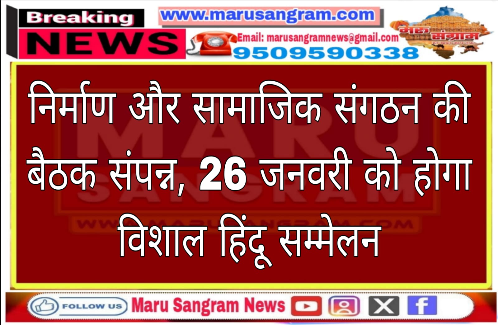 निर्माण और सामाजिक संगठन की बैठक संपन्न, 26 जनवरी को होगा विशाल हिंदू सम्मेलन…..