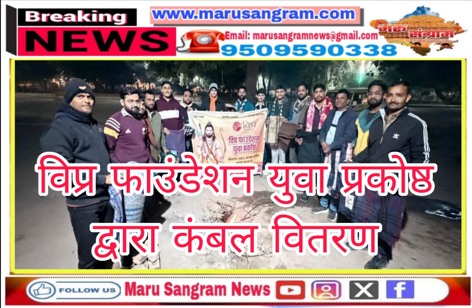 विप्र फाउंडेशन युवा प्रकोष्ठ द्वारा कंबल वितरण
