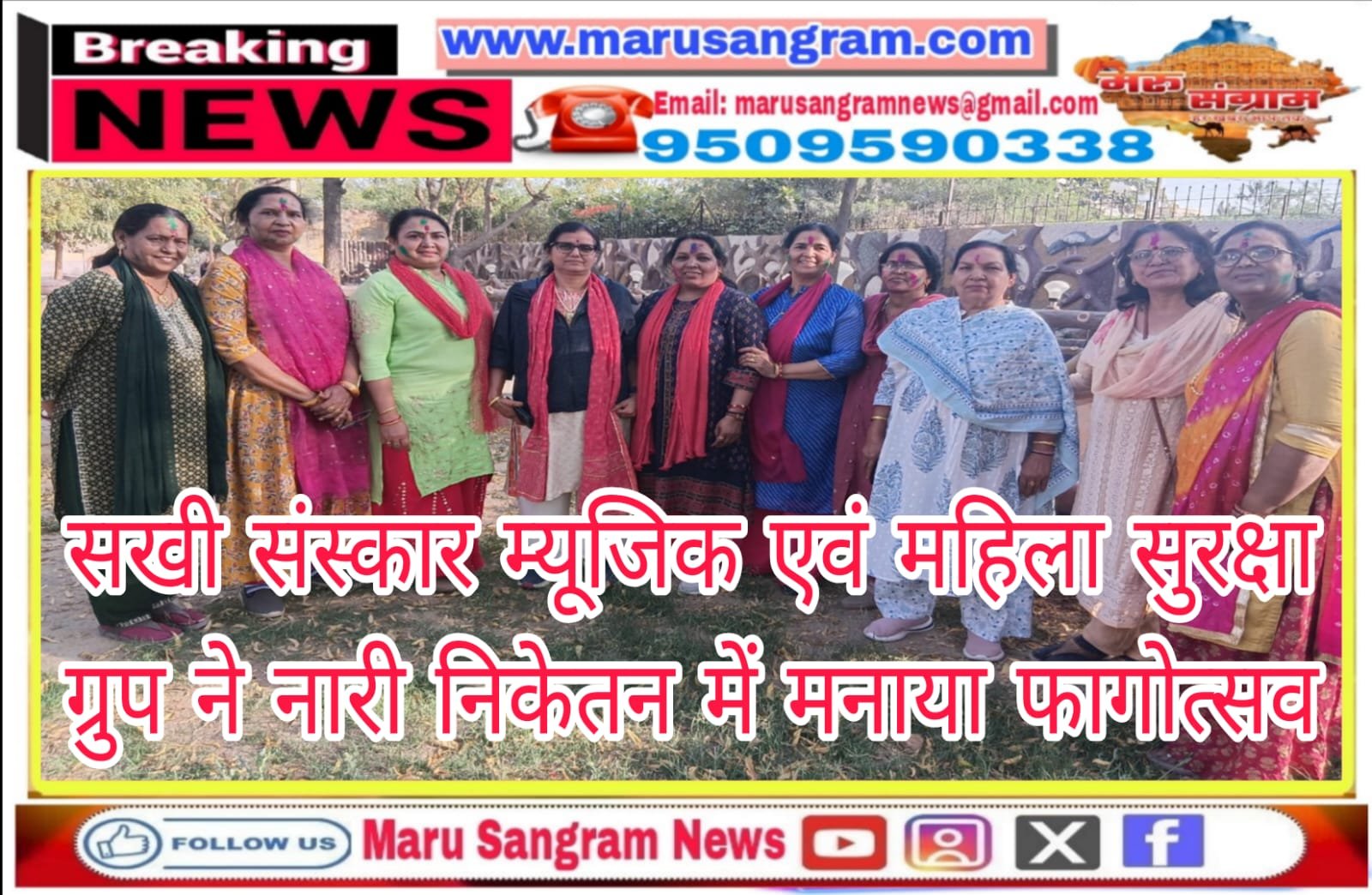 Bikaner, @MaruSangram. Sakhi Sanskar Music and Women’s Safety Group celebrated the Festival of Colors at Nari Niketan in Marudhara Colony. Founder Sandhya Dwivedi stated that the event featured performances of Phag songs and bhajans.