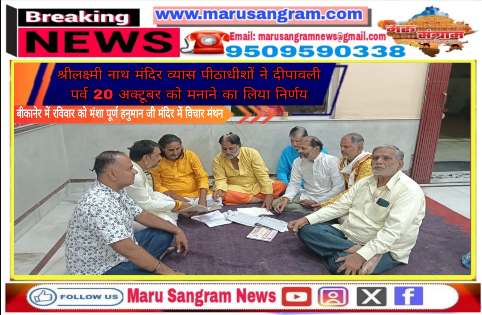 श्रीलक्ष्मी नाथ मंदिर व्यास पीठाधीशों ने दीपावली पर्व 20 अक्टूबर को मनाने का लिया निर्णय….