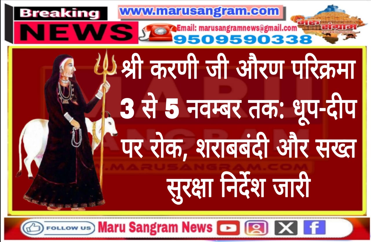 श्री करणी जी औरण परिक्रमा 3 से 5 नवम्बर तक: धूप-दीप पर रोक, शराबबंदी और सख्त सुरक्षा निर्देश जारी…..