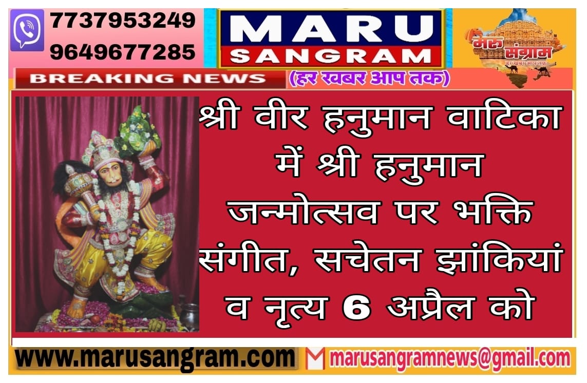 श्री वीर हनुमान वाटिका में श्री हनुमान जन्मोत्सव पर भक्ति संगीत, सचेतन झांकियां व नृृृत्य 6 अप्रैल को….