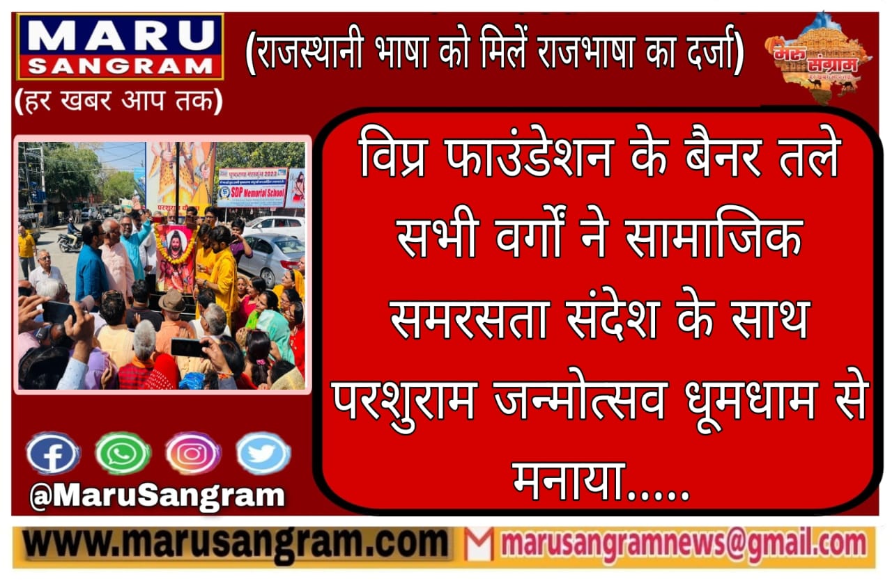 विप्र फाउंडेशन के बैनर तले सभी वर्गों ने सामाजिक समरसता संदेश के साथ परशुराम जन्मोत्सव धूमधाम से मनाया…..