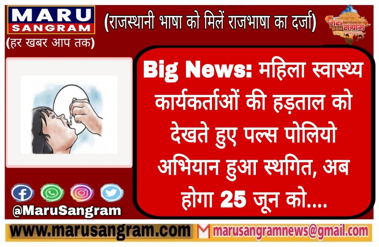 Big News: महिला स्वास्थ्य कार्यकर्ताओं की हड़ताल को देखते हुए पल्स पोलियो अभियान हुआ स्थगित, अब होगा 25 जून को….