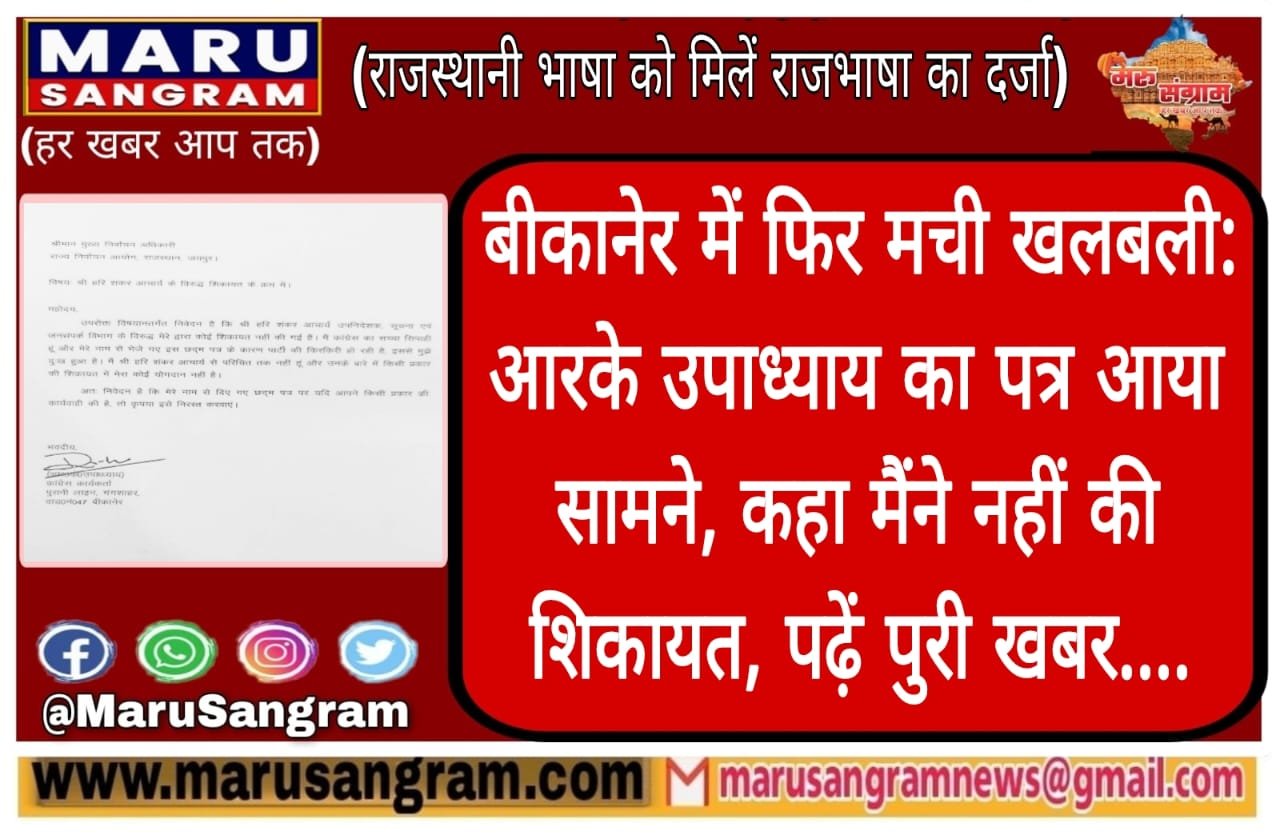 बीकानेर में फिर मची खलबली: आरके उपाध्याय का पत्र आया सामने, कहा मैंने नहीं की शिकायत, पढ़ें पुरी खबर….
