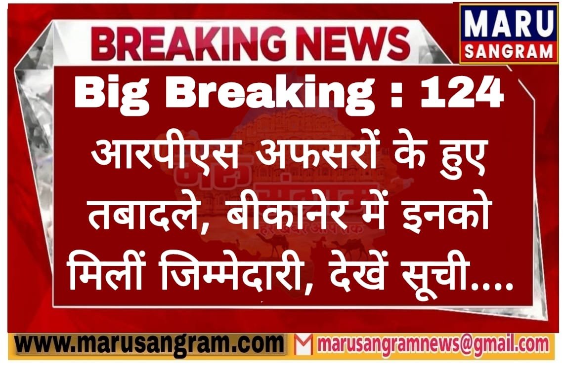 Big Breaking : 124 आरपीएस अफसरों के हुए तबादले, बीकानेर में इनको मिलीं जिम्मेदारी, देखें सूची….