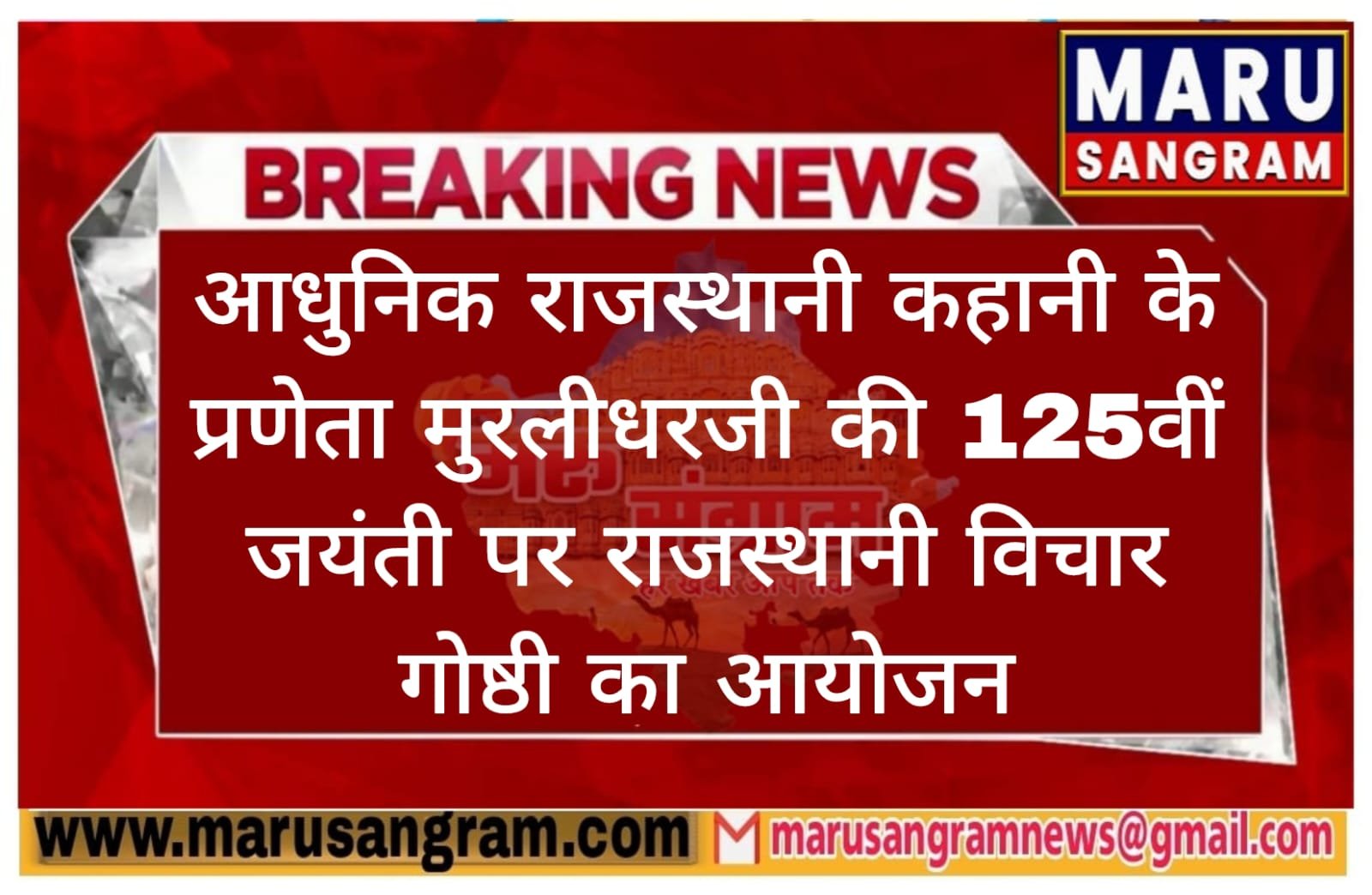 आधुनिक राजस्थानी कहानी के प्रणेता मुरलीधरजी की 125वीं जयंती पर राजस्थानी विचार गोष्ठी का आयोजन….