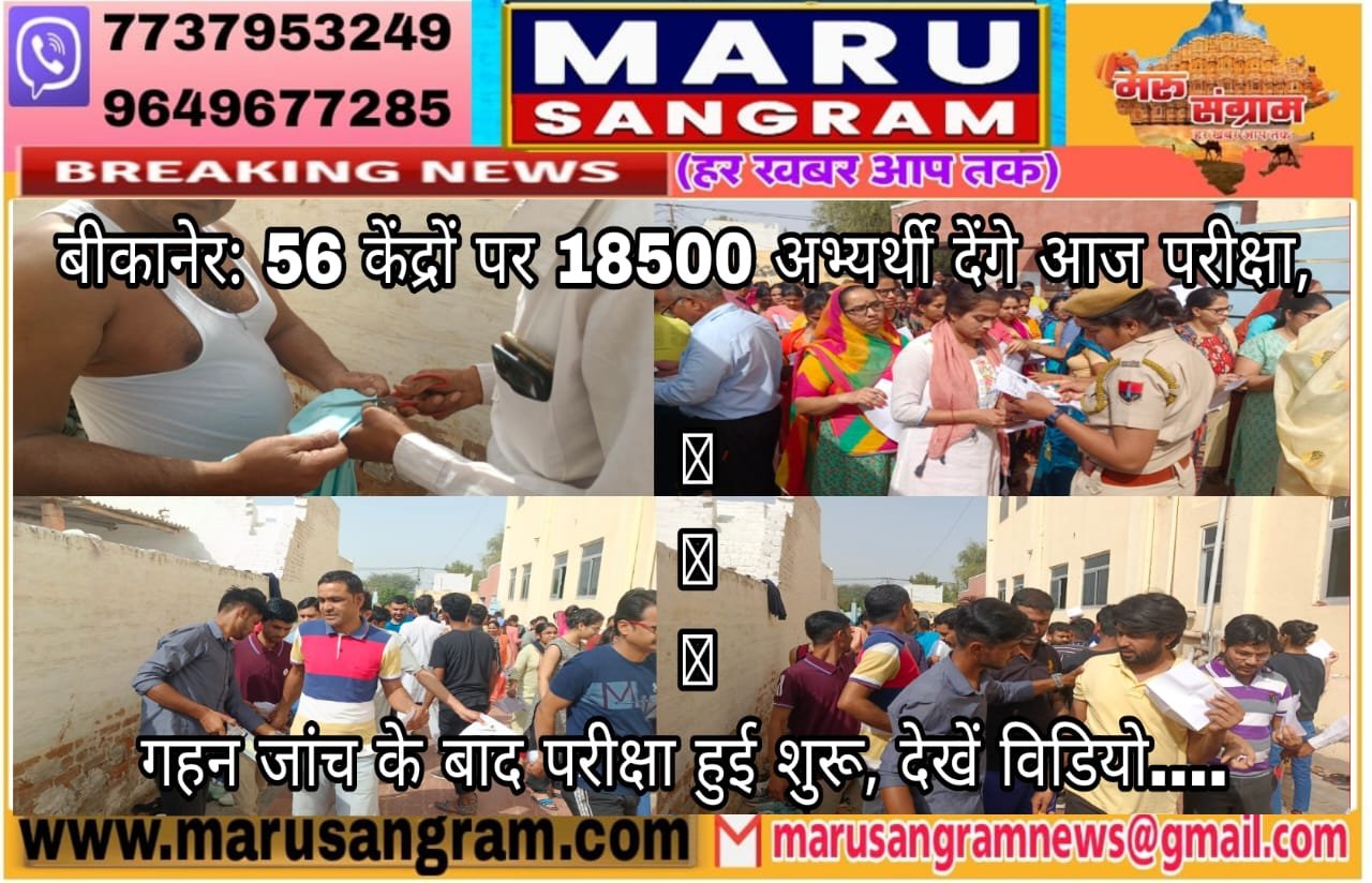 बीकानेर: 56 केंद्राें पर 18500 अभ्यर्थी देंगे आज परीक्षा, गहन जांच के बाद परीक्षा हुई शुरू, देखें विडियो….