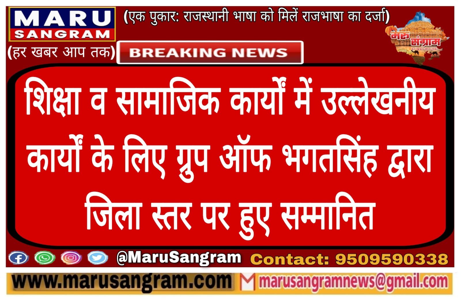 शिक्षा व सामाजिक कार्यों में उल्लेखनीय कार्यों के लिए ग्रुप ऑफ भगतसिंह द्वारा जिला स्तर पर हुए सम्मानित….