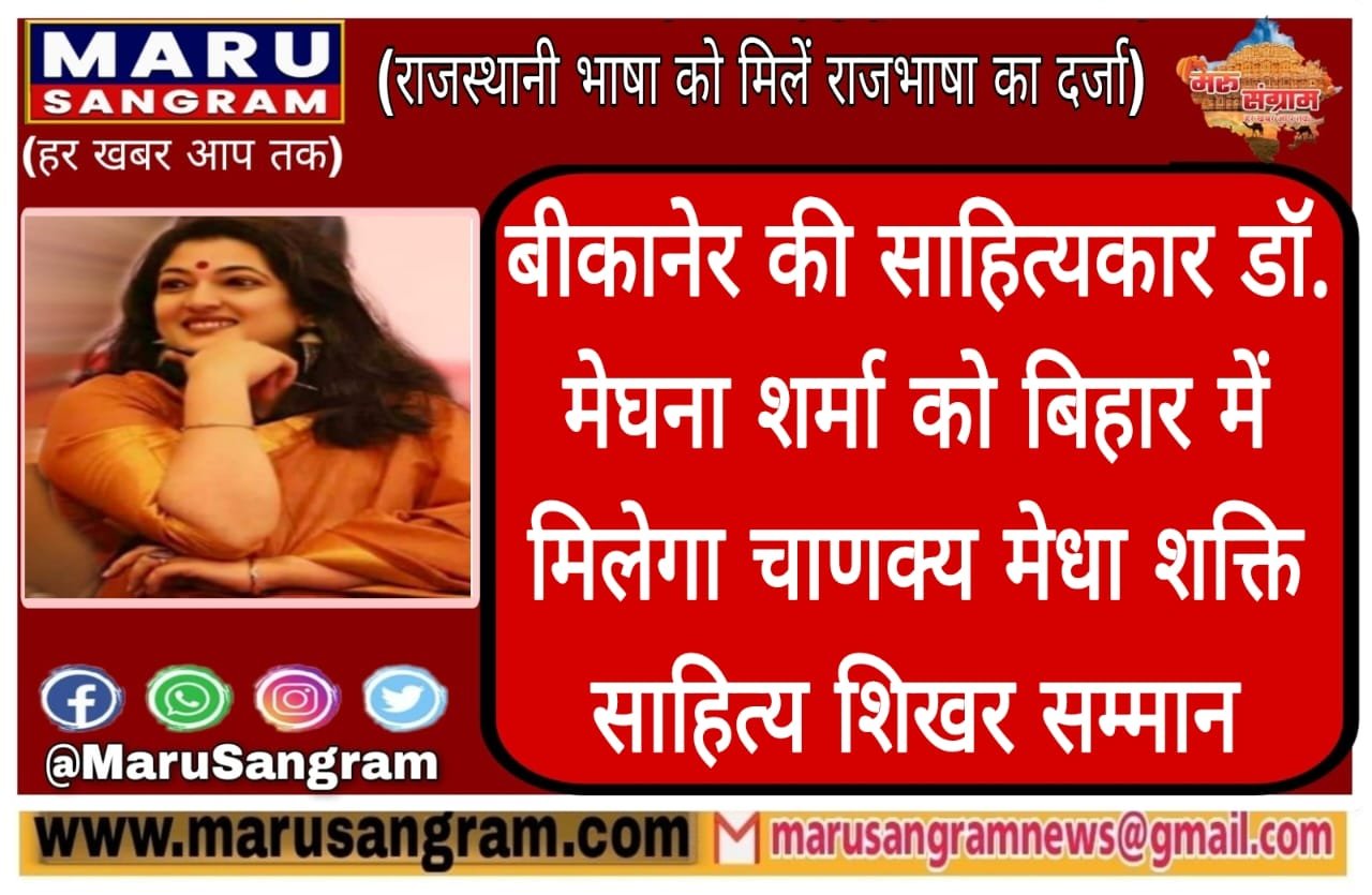 बीकानेर की साहित्यकार डॉ. मेघना शर्मा को बिहार में मिलेगा चाणक्य मेधा शक्ति साहित्य शिखर सम्मान….