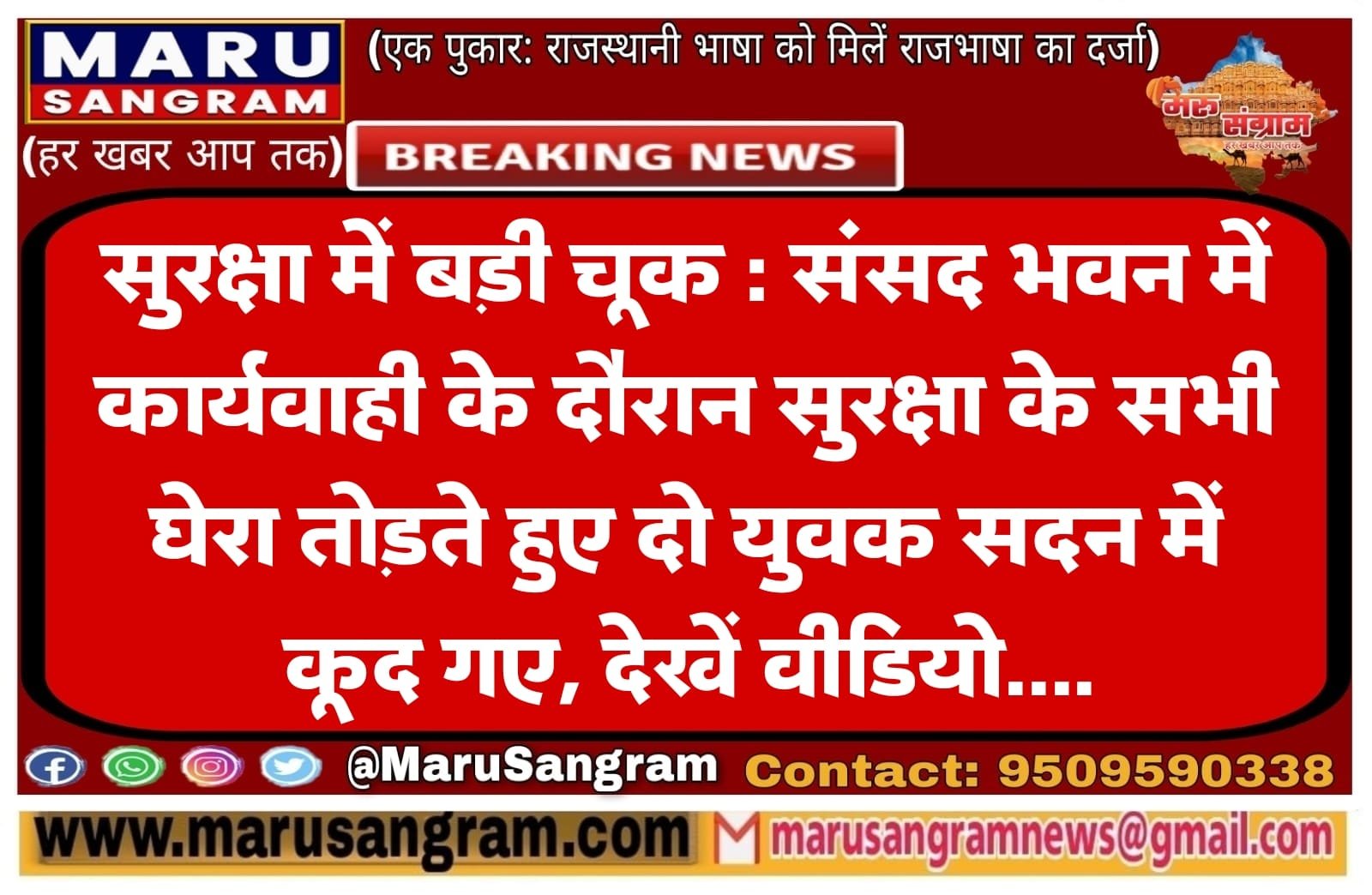 सुरक्षा में बड़ी चूक : संसद भवन में कार्यवाही के दौरान सुरक्षा के सभी घेरा तोड़ते हुए दो युवक सदन में कूद गए, देखें वीडियो….