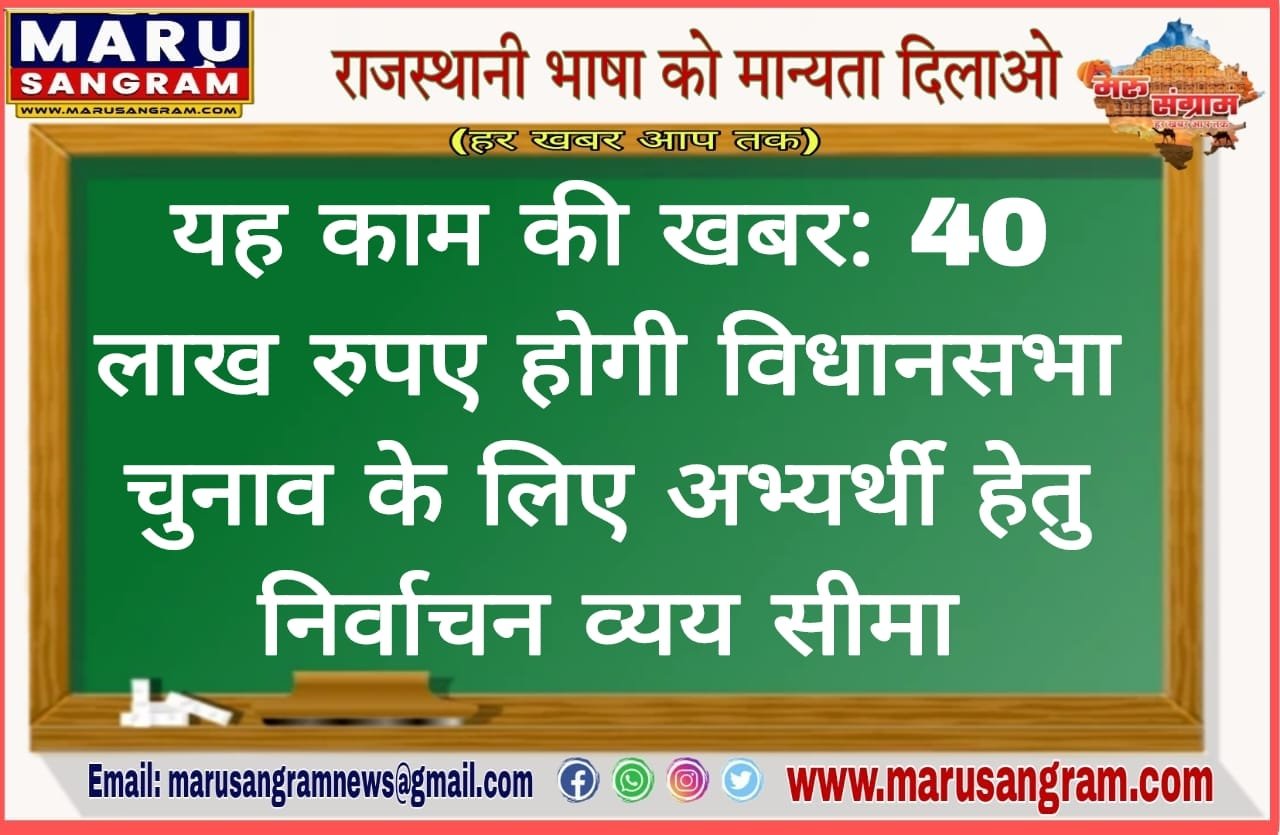 यह काम की खबर: 40 लाख रुपए होगी विधानसभा चुनाव के लिए अभ्यर्थी हेतु निर्वाचन व्यय सीमा….
