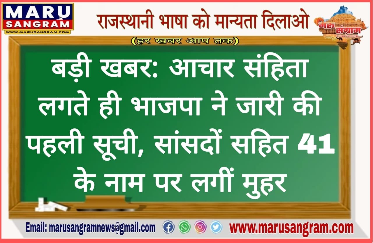 बड़ी खबर: आचार संहिता लगते ही भाजपा ने जारी की पहली सूची, सांसदों सहित 41 के नाम पर लगीं मुहर…..
