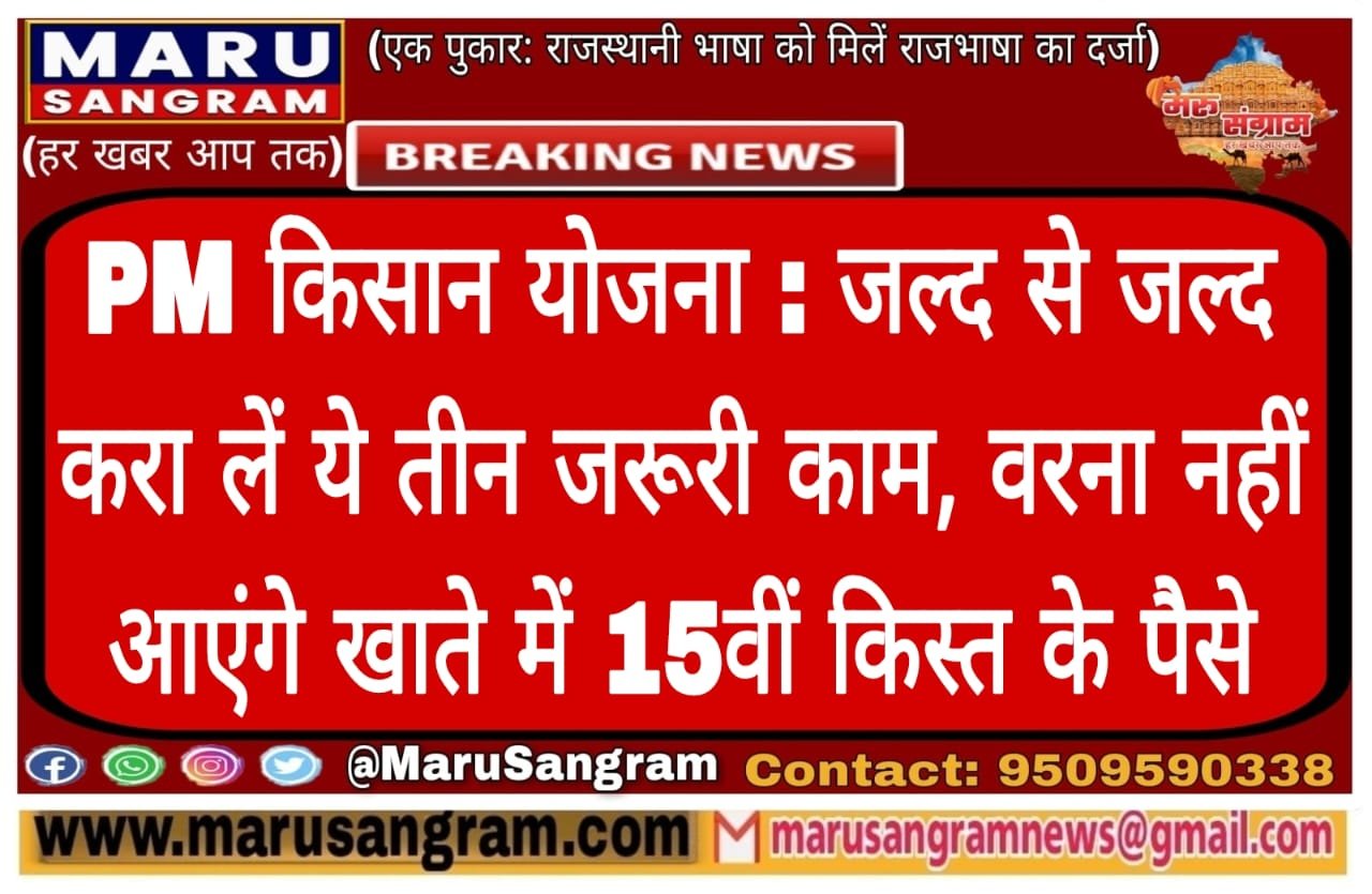 PM किसान योजना : जल्द से जल्द करा लें ये तीन जरूरी काम, वरना नहीं आएंगे खाते में 15वीं किस्त के पैसे….