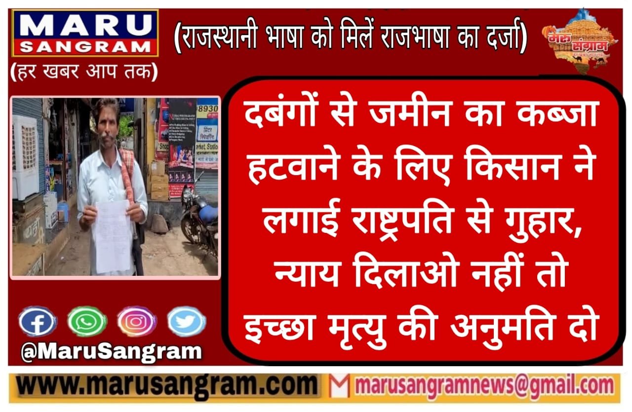 दबंगों से जमीन का कब्जा हटवाने के लिए किसान ने लगाई राष्ट्रपति से गुहार, न्याय दिलाओ नहीं तो इच्छा मृत्यु की अनुमति दो….