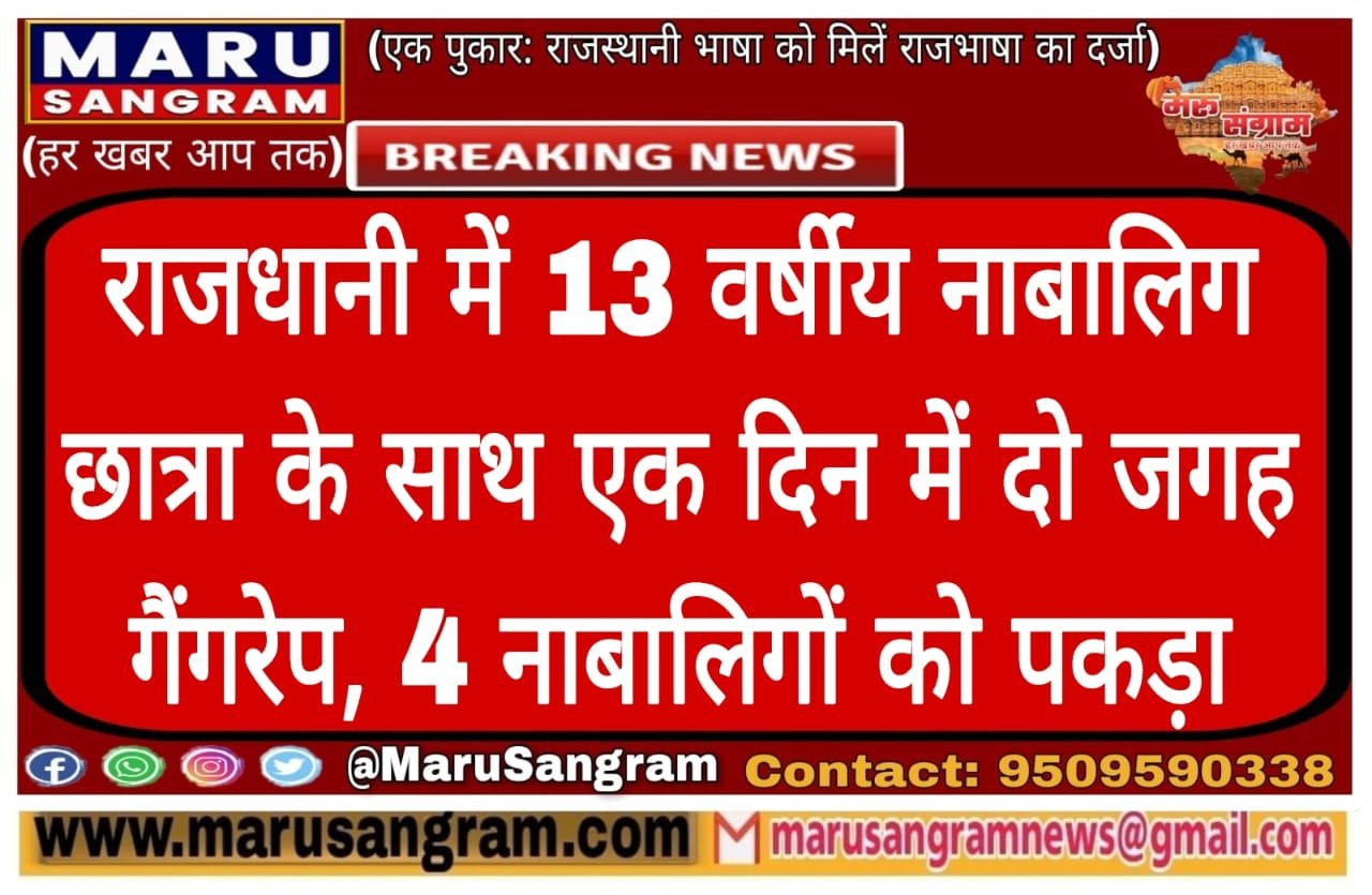 राजधानी में 13 वर्षीय नाबालिग छात्रा के साथ एक दिन में दो जगह गैंगरेप, 4 नाबालिगों को पकड़ा….