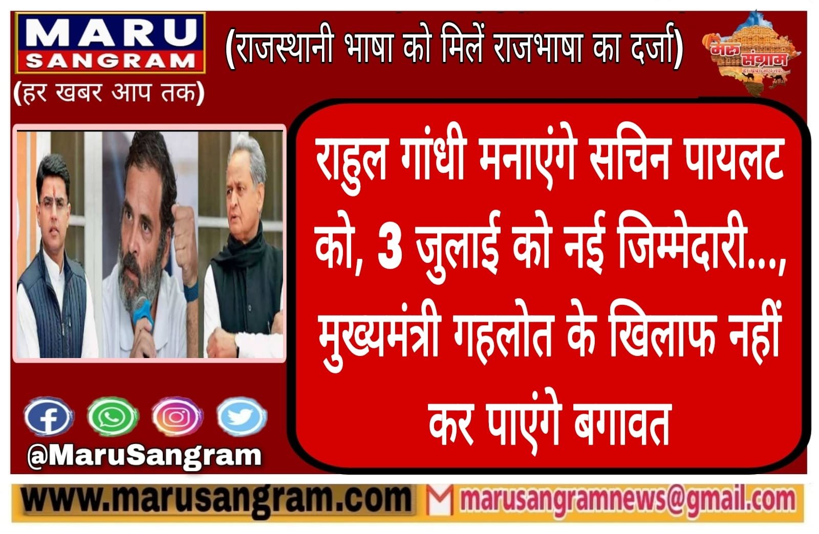 राहुल गांधी मनाएंगे सचिन पायलट को, 3 जुलाई को नई जिम्मेदारी…, मुख्यमंत्री गहलोत के खिलाफ नहीं कर पाएंगे बगावत….