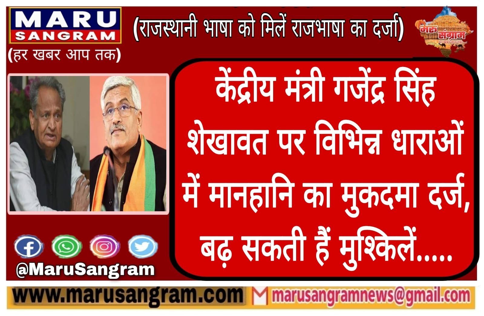 केंद्रीय मंत्री गजेंद्र सिंह शेखावत पर विभिन्न धाराओं में मानहानि का मुकदमा दर्ज, बढ़ सकती हैं मुश्किलें…..
