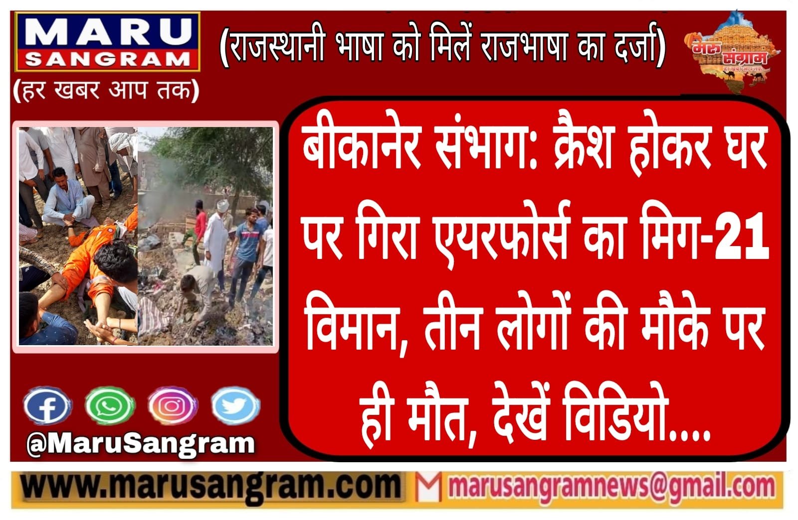 बीकानेर संभाग: क्रैश होकर घर पर गिरा एयरफोर्स का मिग-21 विमान, तीन लोगों की मौके पर ही मौत, देखें विडियो….