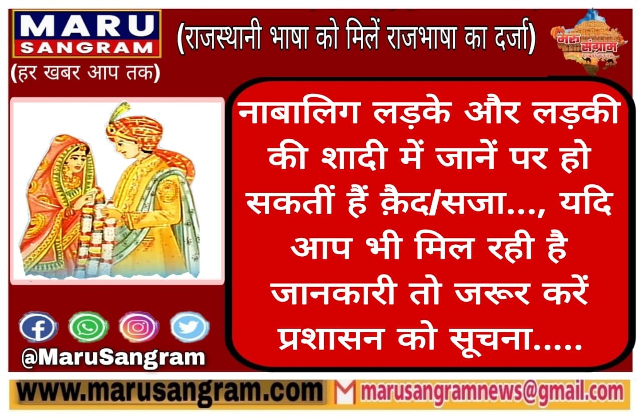 नाबालिग लड़के और लड़की की शादी में जानें पर हो सकतीं हैं क़ैद/सजा…, यदि आप भी मिल रही है जानकारी तो जरूर करें प्रशासन को सूचना…..