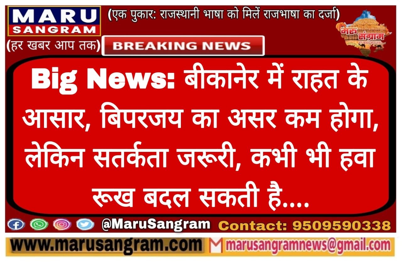 Big News: बीकानेर में राहत के आसार, बिपरजय का असर कम होगा, लेकिन सतर्कता जरूरी, कभी भी हवा रूख बदल सकती है….