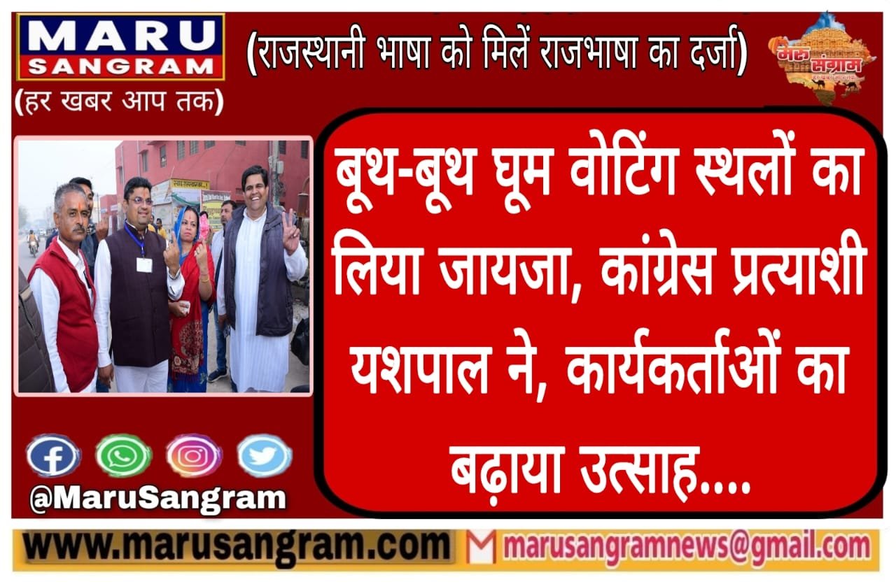 बूथ-बूथ घूम वोटिंग स्थलों का लिया जायजा, कांग्रेस प्रत्याशी यशपाल ने, कार्यकर्ताओं का बढ़ाया उत्साह….