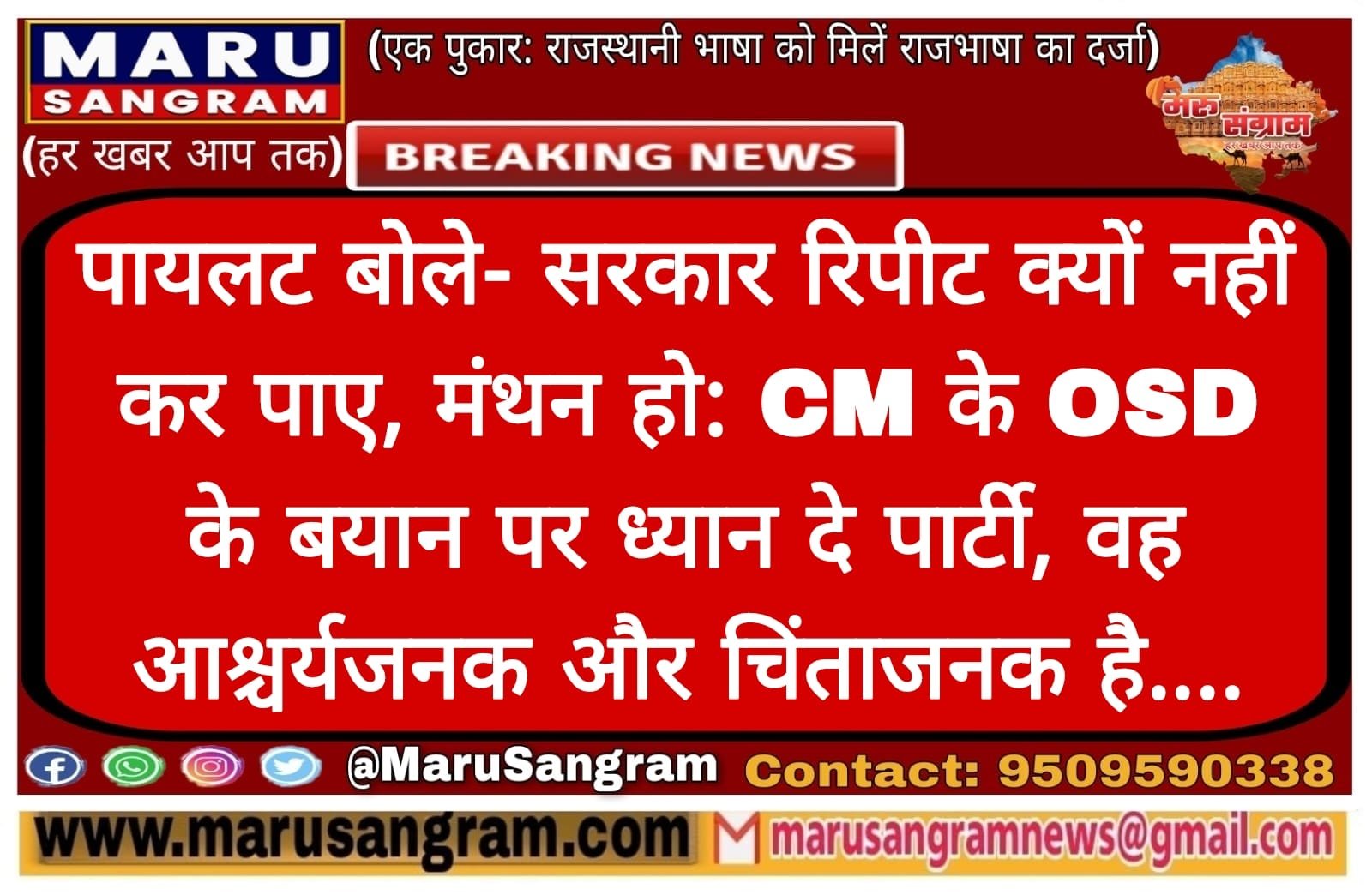 पायलट बोले- सरकार रिपीट क्यों नहीं कर पाए, मंथन हो: CM के OSD के बयान पर ध्यान दे पार्टी, वह आश्चर्यजनक और चिंताजनक है….