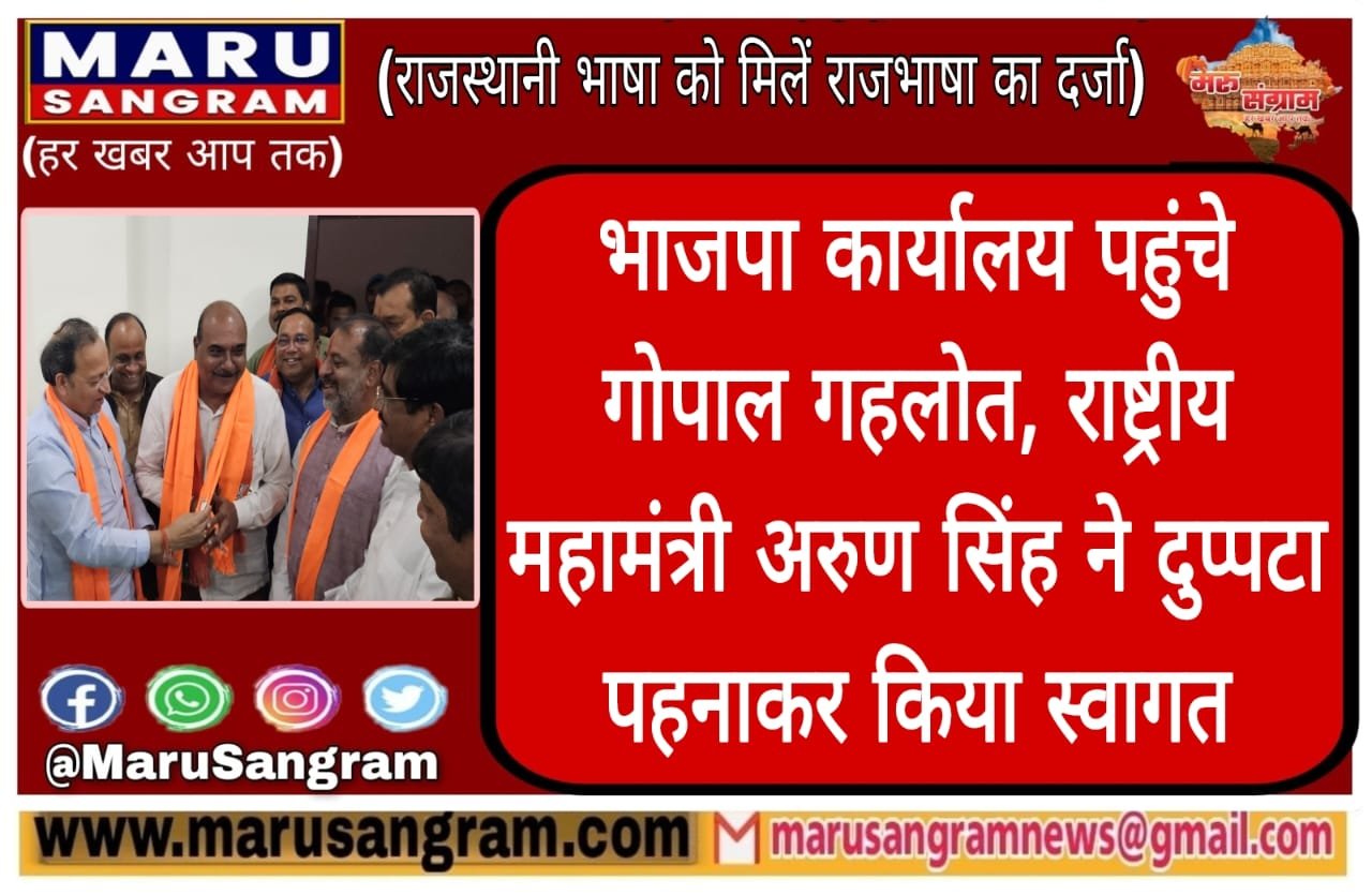 भाजपा कार्यालय पहुंचे गोपाल गहलोत, राष्ट्रीय महामंत्री अरुण सिंह ने दुप्पटा पहनाकर किया स्वागत….
