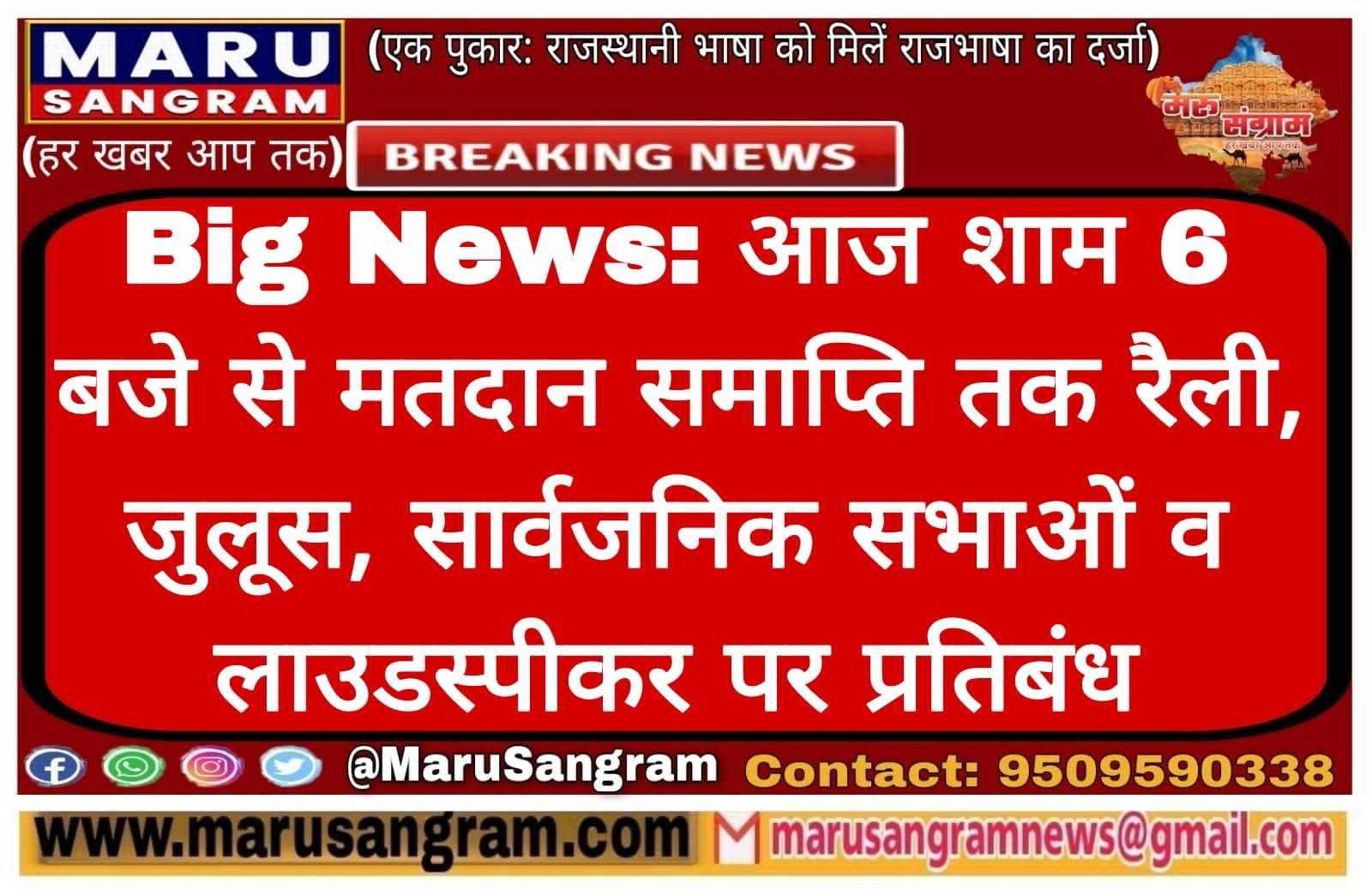 Big News: आज शाम 6 बजे से मतदान समाप्ति तक रैली, जुलूस, सार्वजनिक सभाओं व लाउडस्पीकर पर प्रतिबंध….