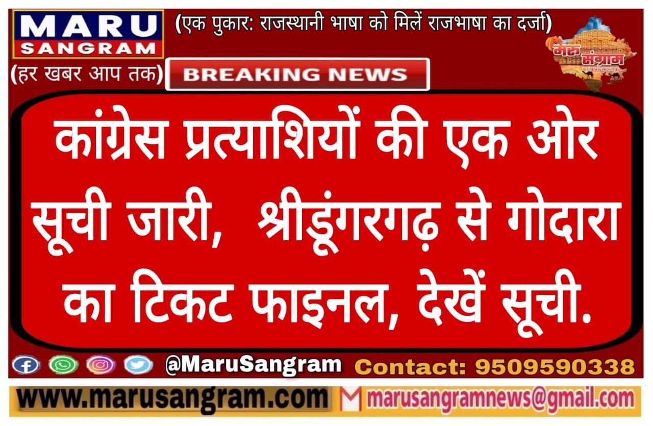 कांग्रेस प्रत्याशियों की एक ओर सूची जारी, श्रीडूंगरगढ़ से गोदारा का टिकट फाइनल, देखें सूची…