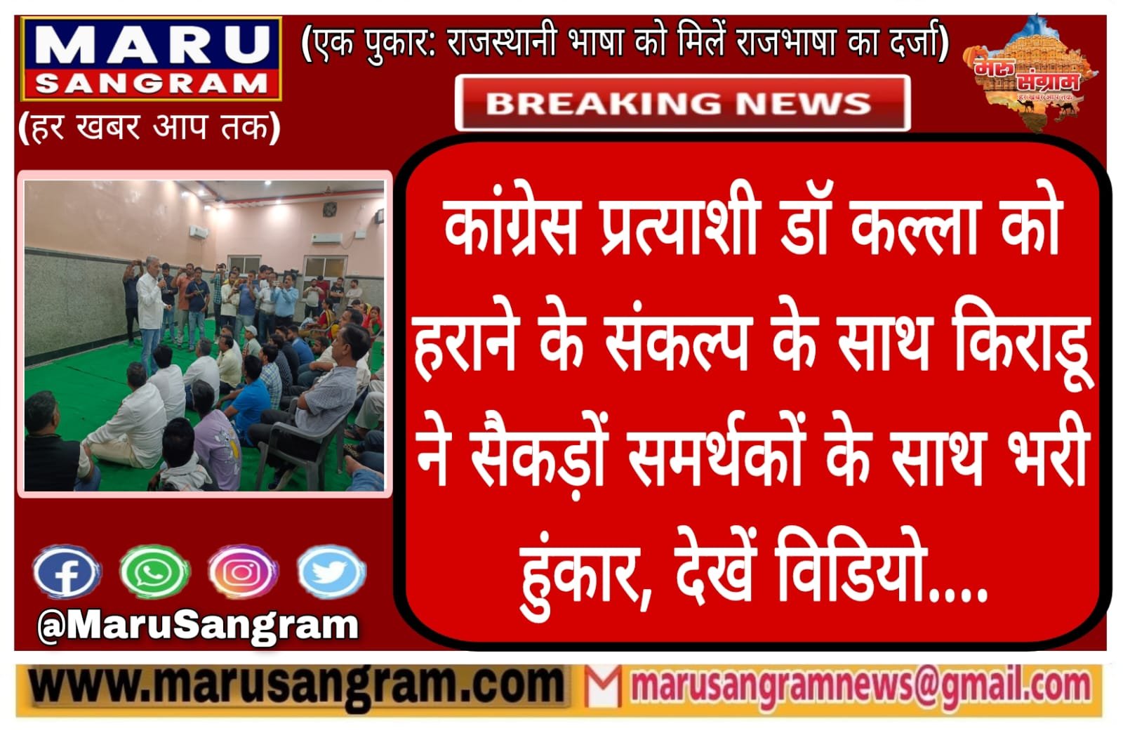 कांग्रेस प्रत्याशी डॉ कल्ला को हराने के संकल्प के साथ किराडू ने सैकड़ों समर्थकों के साथ भरी हुंकार, देखें विडियो….
