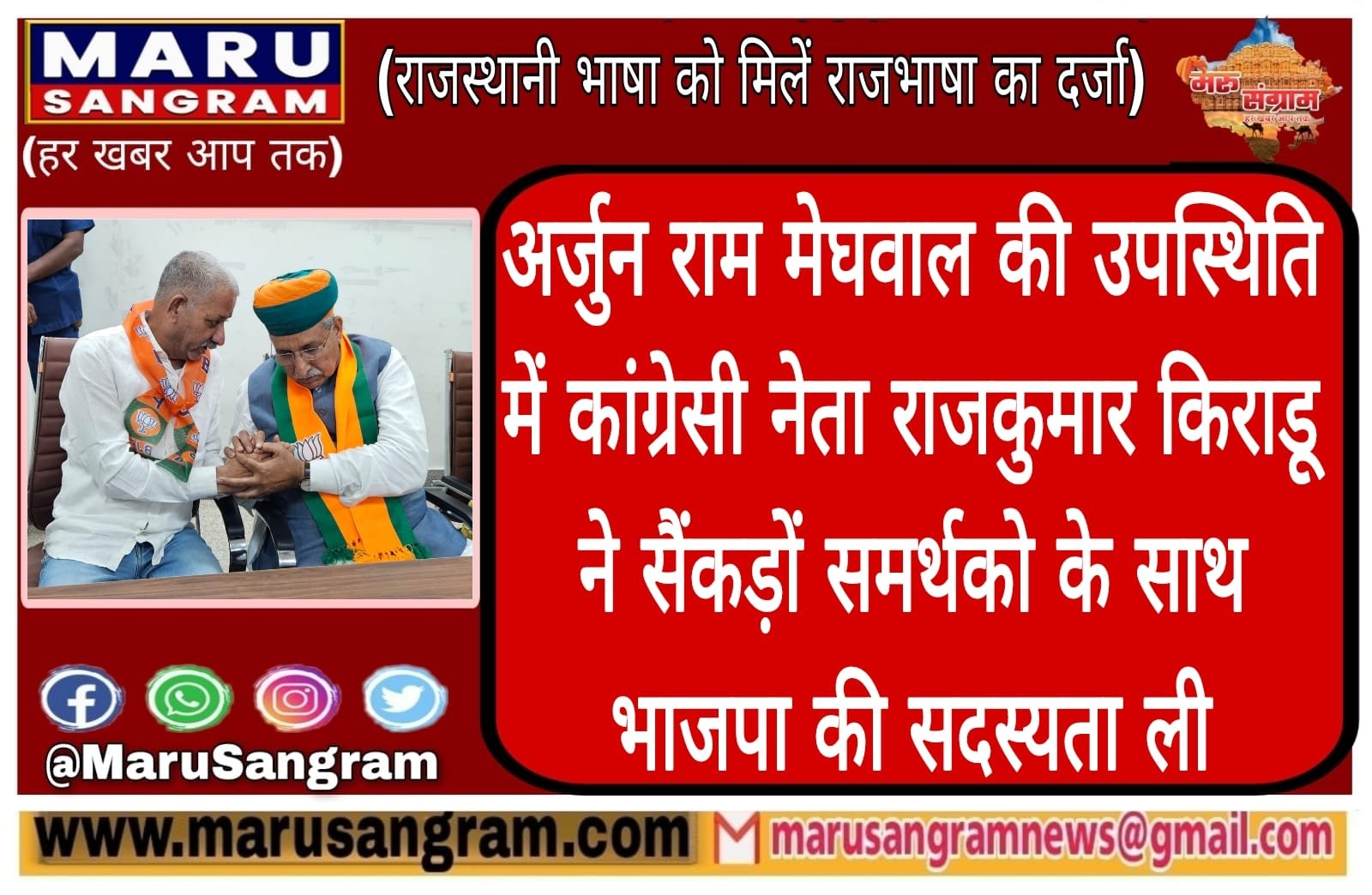 अर्जुन राम मेघवाल की उपस्थिति में कांग्रेसी नेता राजकुमार किराडू ने सैंकड़ों समर्थको के साथ भाजपा की सदस्यता ली….