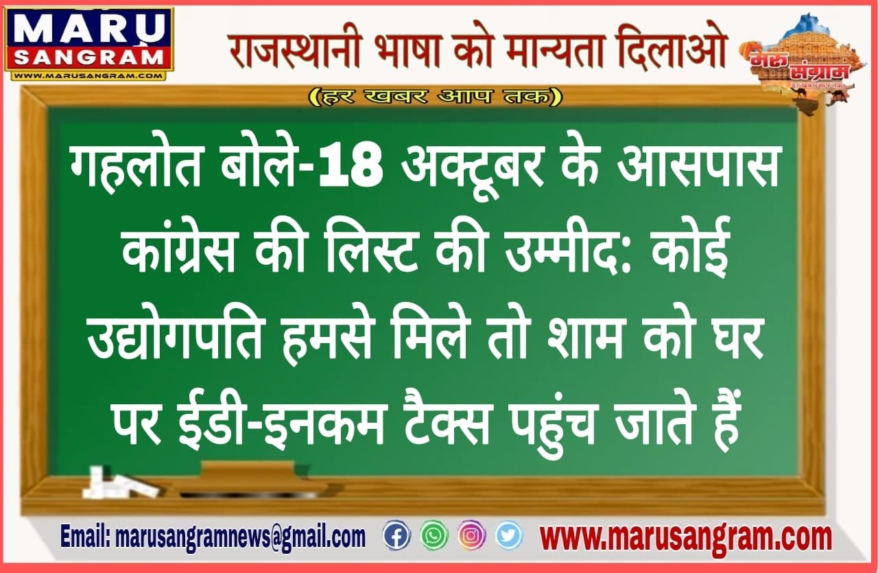 गहलोत बोले-18 अक्टूबर के आसपास कांग्रेस की लिस्ट की उम्मीद: कोई उद्योगपति हमसे मिले तो शाम को घर पर ईडी-इनकम टैक्स पहुंच जाते हैं…..