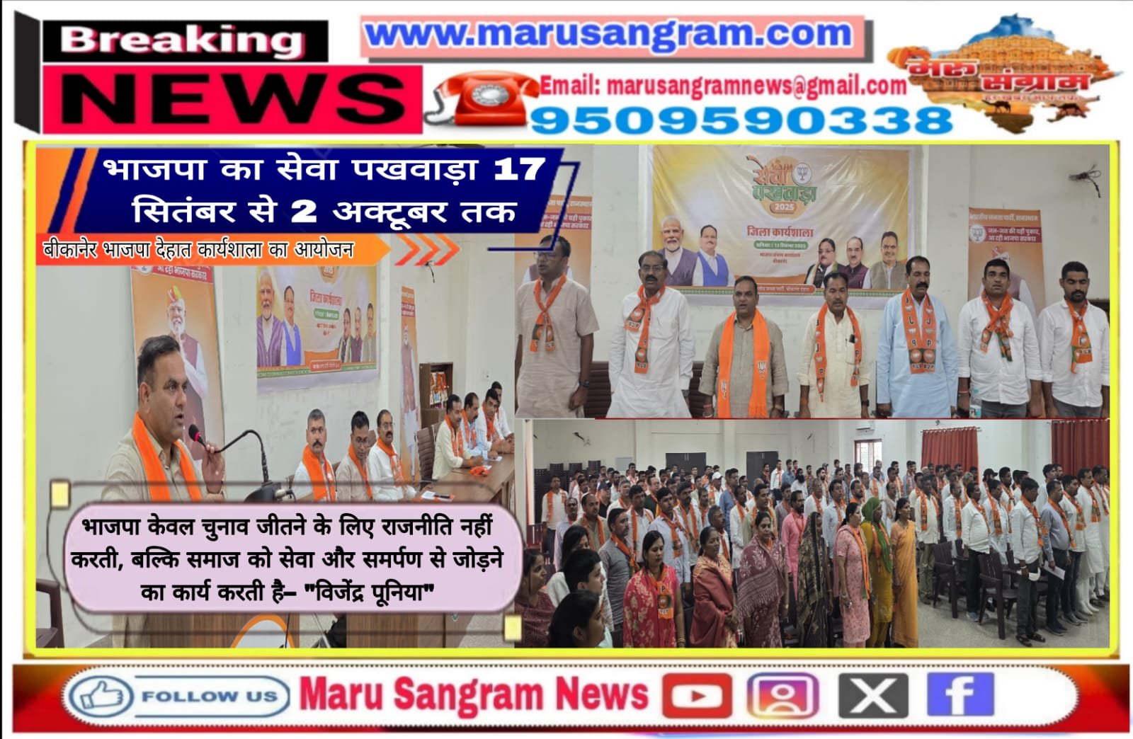 भाजपा का सेवा पखवाड़ा 17 सितंबर से 2 अक्टूबर तक बीकानेर भाजपा देहात कार्यशाला का आयोजन…..