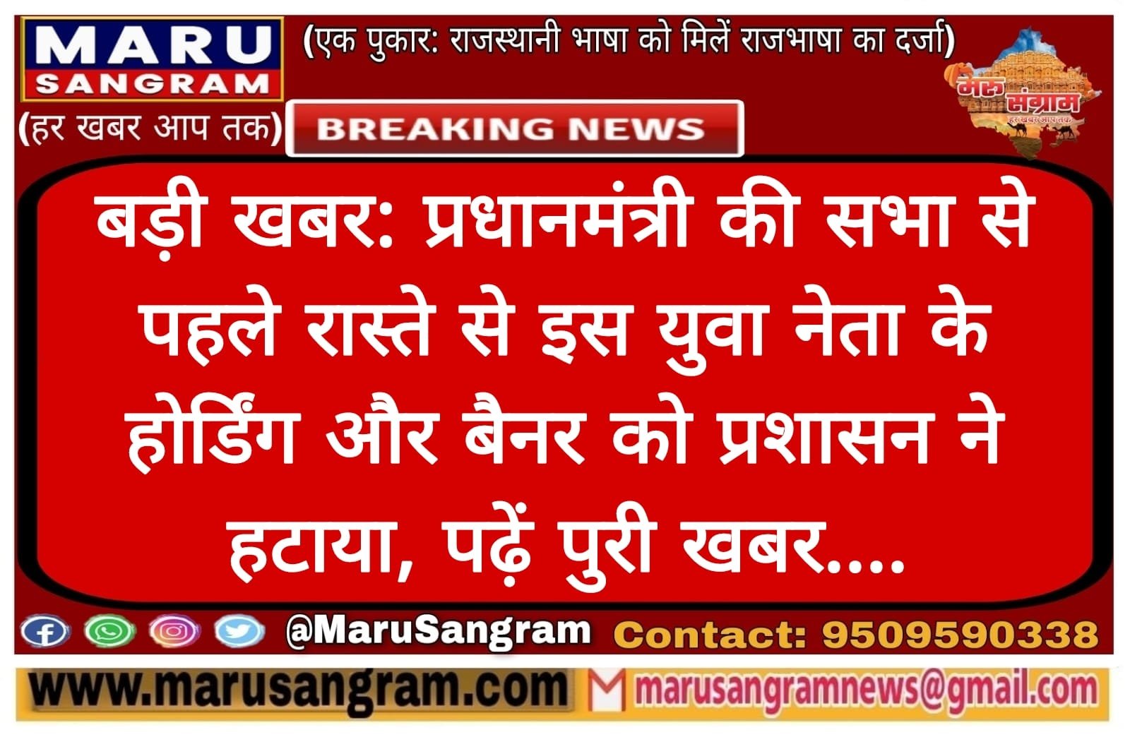 बड़ी खबर: प्रधानमंत्री की सभा से पहले रास्ते से इस युवा नेता के होर्डिंग और बैनर को प्रशासन ने हटाया, पढ़ें पुरी खबर….