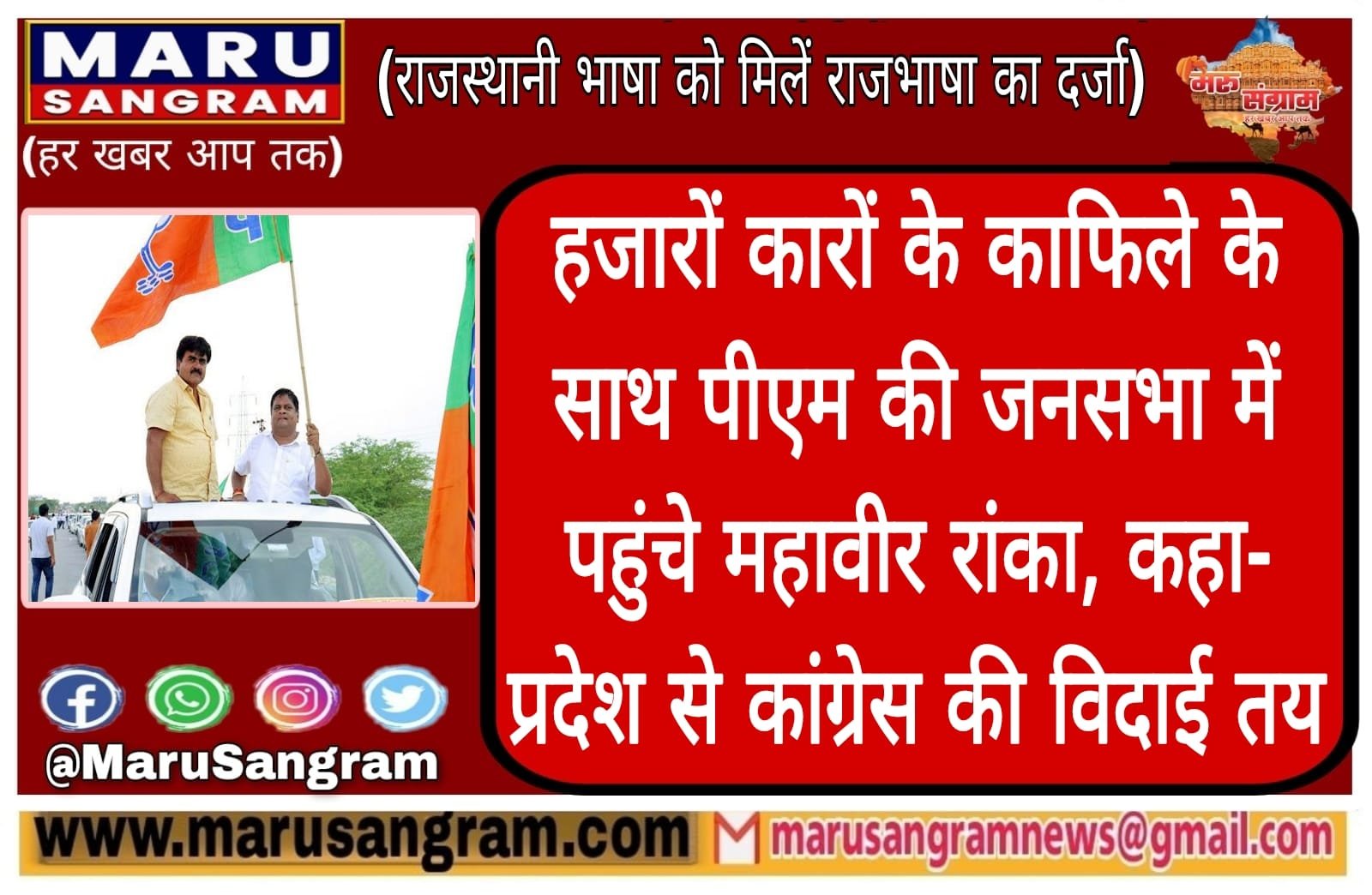 हजारों कारों के काफिले के साथ पीएम की जनसभा में पहुंचे महावीर रांका, कहा- प्रदेश से कांग्रेस की विदाई तय….